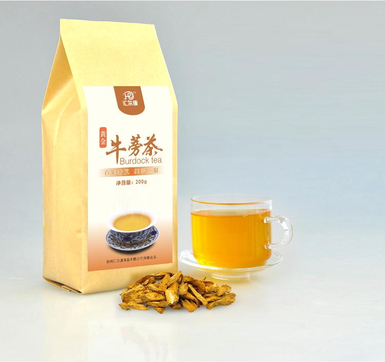 牛蒡茶是純天然的保健食品,含有豐富的蛋白質、 脂肪、糖類、膳食纖維、菊糖、牛蒡甙、維生素類、礦 物質鈣、磷、鉀、鐵等,可促進血液循環、清腸通便、 潤澤肌膚、抗衰老、防中風、降血壓、降血脂、降血糖、 減肥、美容、滋陰壯陽等,對糖尿病、便秘、動脈硬化、 三高、類風濕患者有顯著療效,對癌癥和尿毒癥也有很 好的預防和治療作用,因此牛蒡茶被譽為“大自然的最 佳清血劑”。《本草綱目》、《現代中藥學大辭典》、《 中藥大辭典》等詳細記載和論述了牛蒡茶對人體排、補平衡的療效。